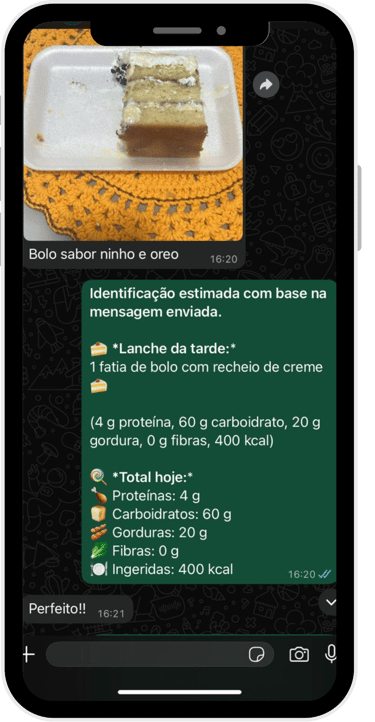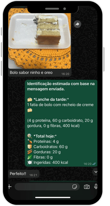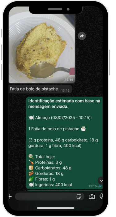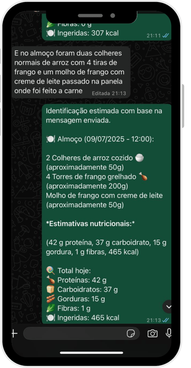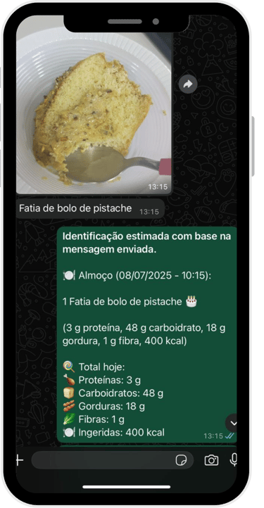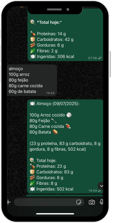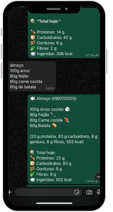 Durante esse período, você já vai conseguir registrar suas refeições e sentir na prática como é fácil manter o controle alimentar direto pelo WhatsApp.